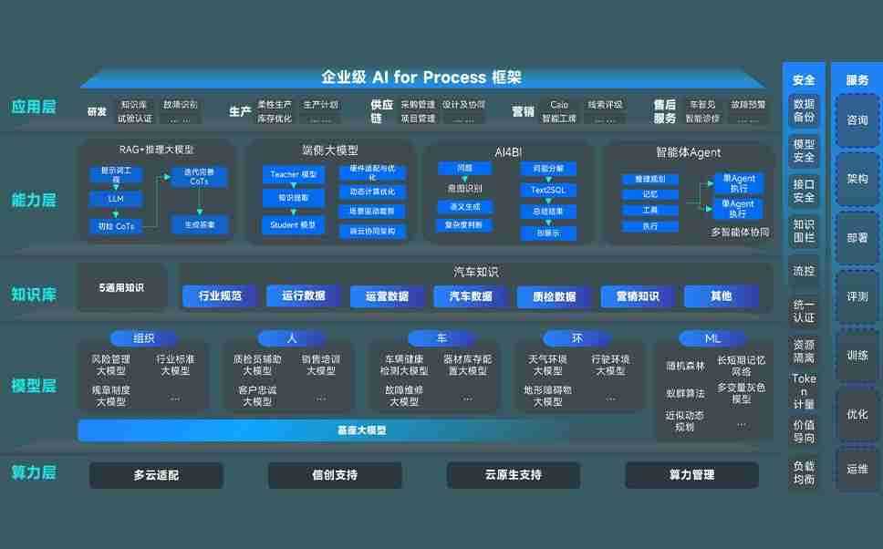端到端的一站式AI工作空间深度融合了从企业战略规划到日常经营的全流程业务板块,,,,定向解决车企内部领域多、、、部门多、、、链条长、、、场景碎片化等难题,,,,支持车企快速构建以AI为核心的生产力写作体系,,实现任务执行与AI能力的无缝集成与交互